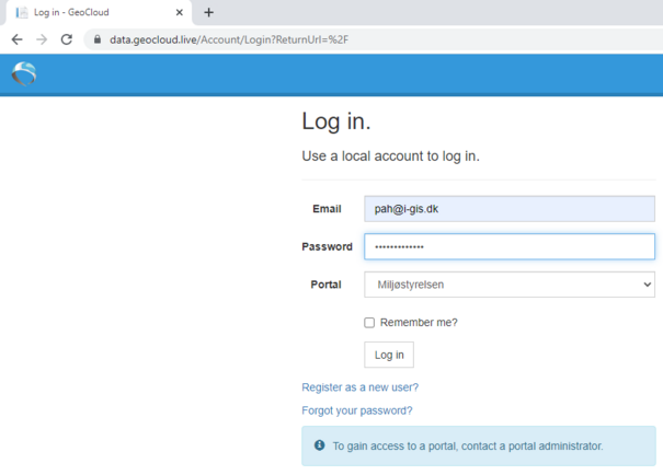 Go to https://data.geocloud.live/Account/Login?ReturnUrl=%2F Login with your email and password. Select portal.